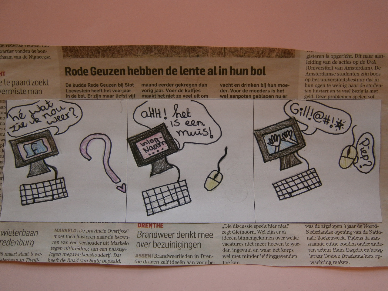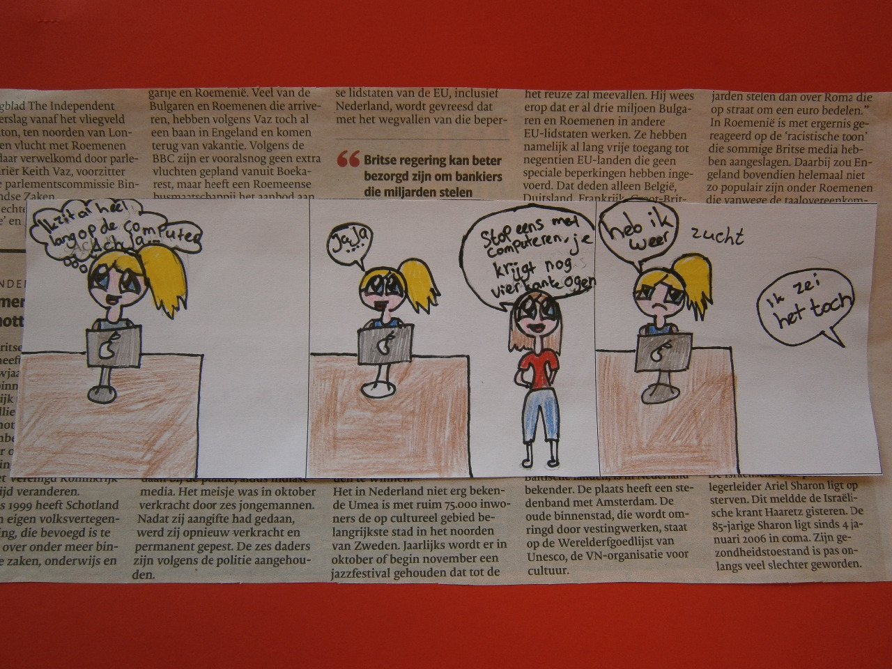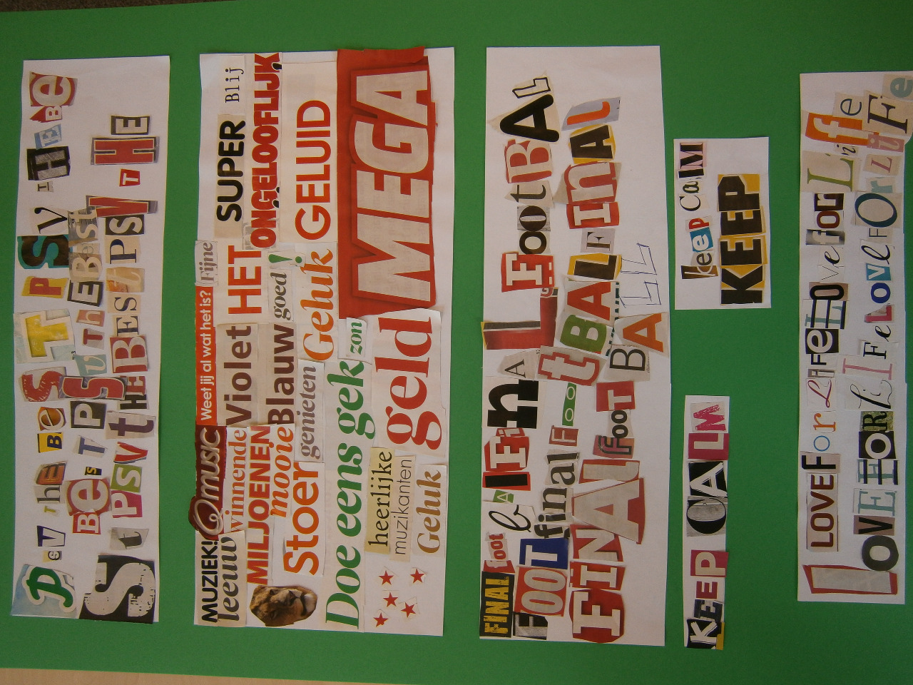 en ook hebben we letters uit een krant of tijdschrift geknipt en daarvan woorden gemaakt en naast elkaar geplakt